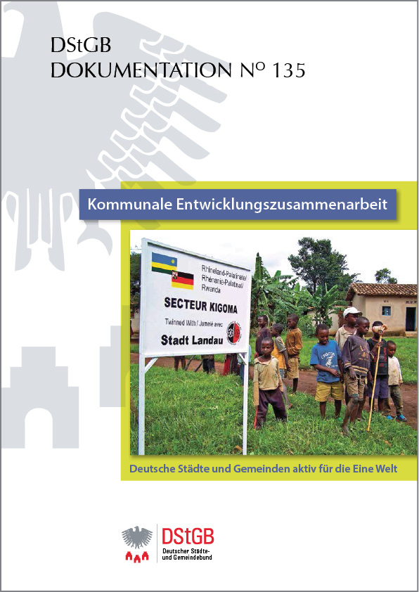 Der Deutsche Städte- und Gemeindebund (DStGB) hat gemeinsam mit der Servicestelle Kommunen in der Einen Welt Anfang 2016 die Dokumentation „Kommunale Entwicklungszusammenarbeit. Deutsche Städte und Gemeinden aktiv für die Eine Welt“ veröffentlicht. Mit der Broschüre soll auf das breite und vielfältige Engagement gerade kleinerer und mittlerer Kommunen für die nachhaltige Gestaltung der Einen Welt aufmerksam gemacht werden. Städte und Gemeinden, die im Bereich der kommunalen Entwicklungszusammenarbeit noch nicht aktiv sind, sollen hier Anregungen für ein eigenes Engagement finden. Die Dokumentation soll neugierig machen, motivieren und ermuntern, sich entwicklungspolitisch zu engagieren.