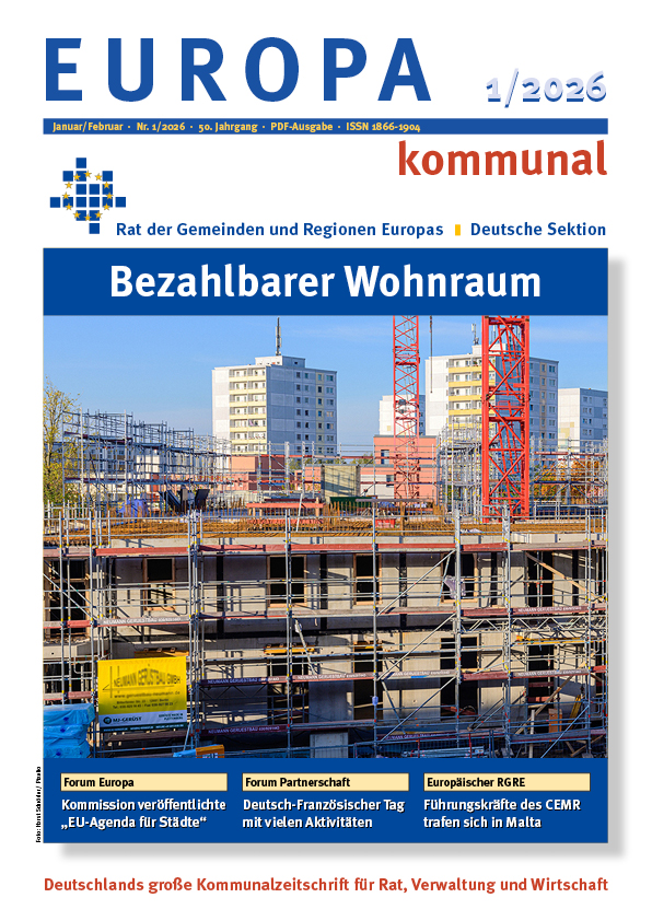 Nachstehend finden Sie das Inhaltsverzeichnis der aktuellen Ausgabe sowie als Leseprobe den Leitartikel zum Schwerpunktthema. Im ARCHIV finden Sie die Schwerpunkte und Leitartikel aller Ausgaben von „EUROPA kommunal“ ab Heft 1/2009.